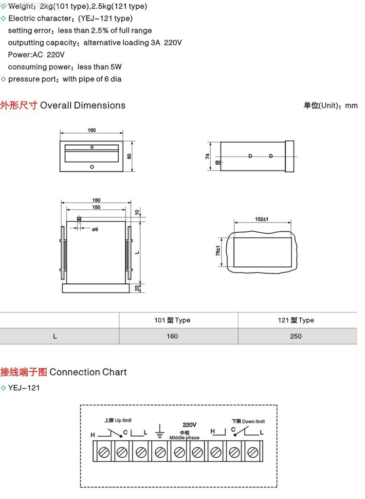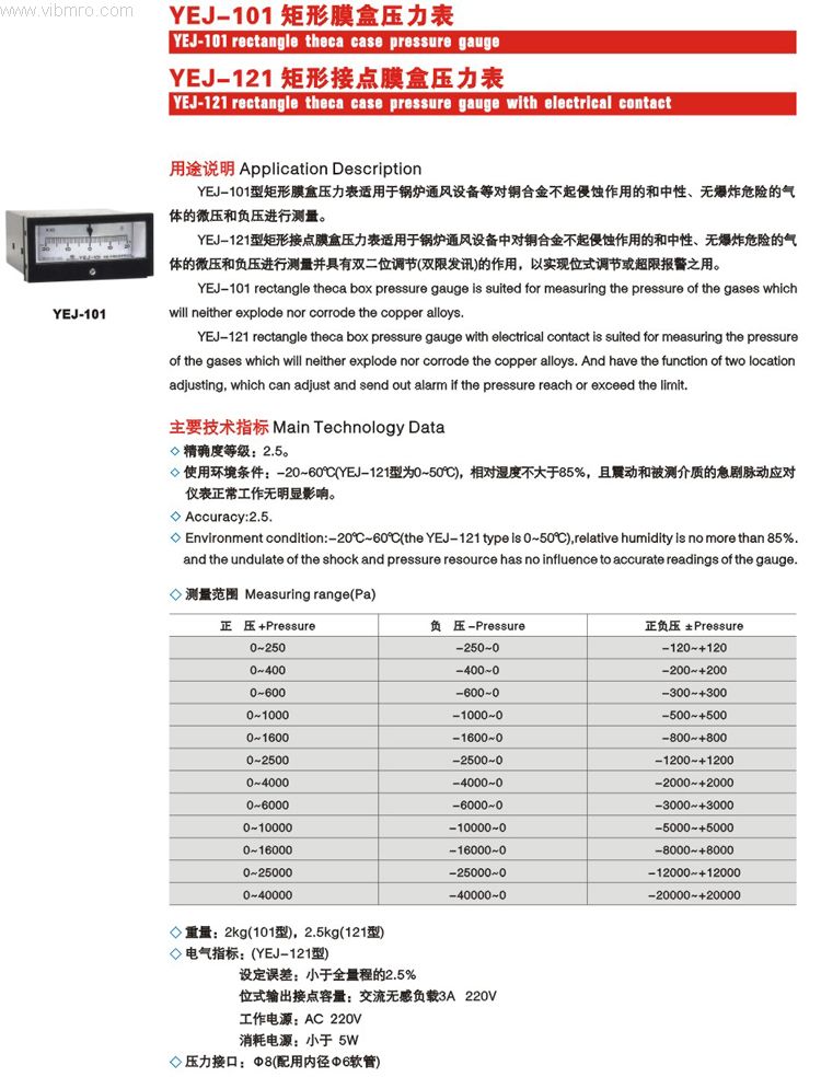 产品标题:YEJ-121矩形接点膜盒压力表